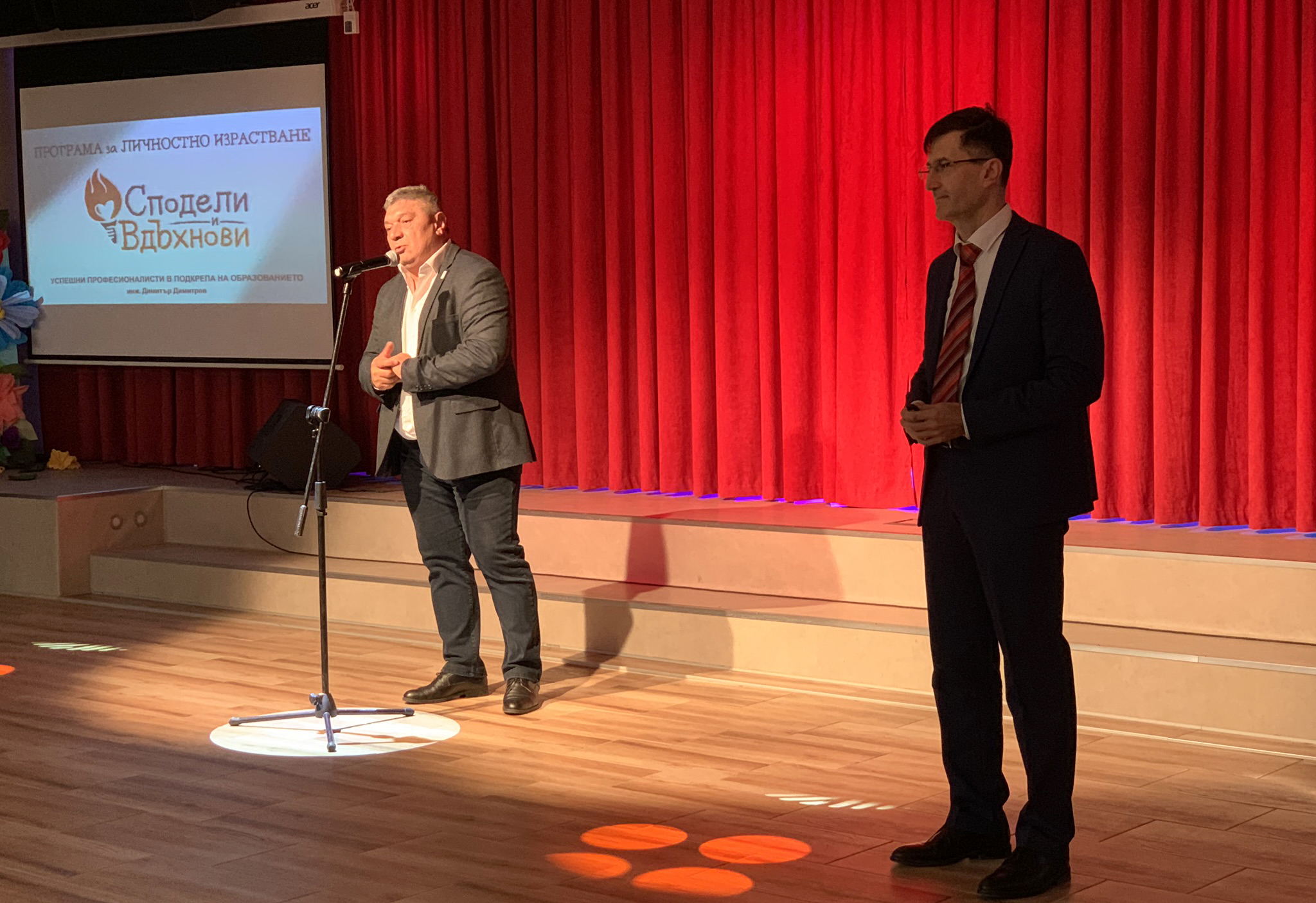 Презентацията на инж. Димитров е част от програмата на сдружението „Сподели и вдъхнови!“, основано от успешни хора в България, които споделят знанията и опита, придобити по време на житейския им път. Чрез личните си истории те показват на учениците и учителите как могат да бъдат успешни и щастливи и в България. Мисията им е да вдъхновява децата да мечтаят смело, да действат с решителност и постоянство, за да са успешни. Споделяйки принципите, които стоят в основата на всеки успешен бизнес и трудностите, през които минава развитието на всеки човек, да помогнат на младите хора в България да формулират целите си и да начертаят пътя към личния си успех. Път, по който да вървят достойно, отстоявайки себе без да забравят да благодарят, да дават и да са част от обществото.