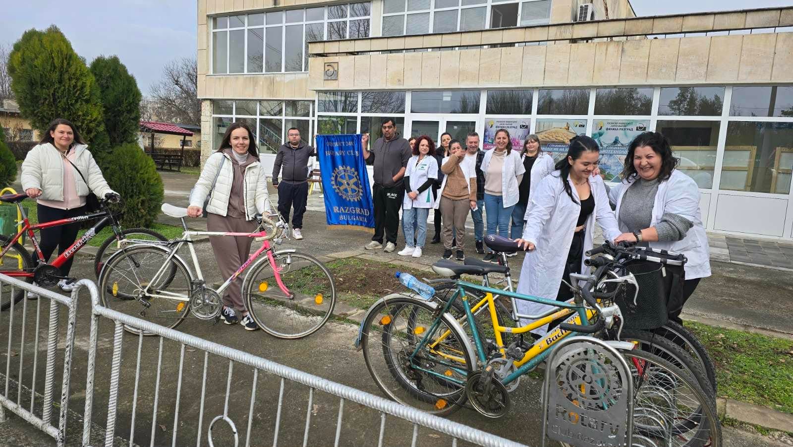 Дата: 18/12/2025Ротари клуб-Разград дари на Филиала на Русенския университет в град Разград стойки за велосипеди, които са поставени пред двата корпуса на Филиала. Тази прекрасна инициатива е адресирана към всички, които ползват велосипеди и искат да живеят в екологична среда. Безспорно карането на велосипед е полезно за физическото и психическото здраве на човека. Подобрява се работата на редица органи, на сърдечно-съдовата система, заздравяват се мускулите, намалява стреса и теглото е под контрол. Карането на велосипед подобрява издръжливостта, координацията и настроението. Велосипедът същевременно е екологичен и социален начин на придвижване.